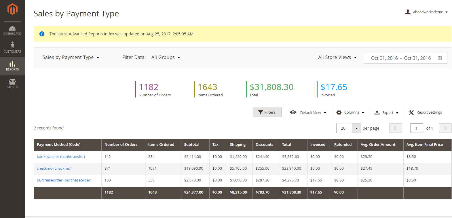 These are three main reports you should be focused on. But what if there are 17 reports available in one extension? It’s possible to define this plugin as the universal tool for making consistent business decisions. Moreover, the report generation of even a heavy-orders store takes the record-low amount of time. The reports are interconnected and you may trip over them just in a click.