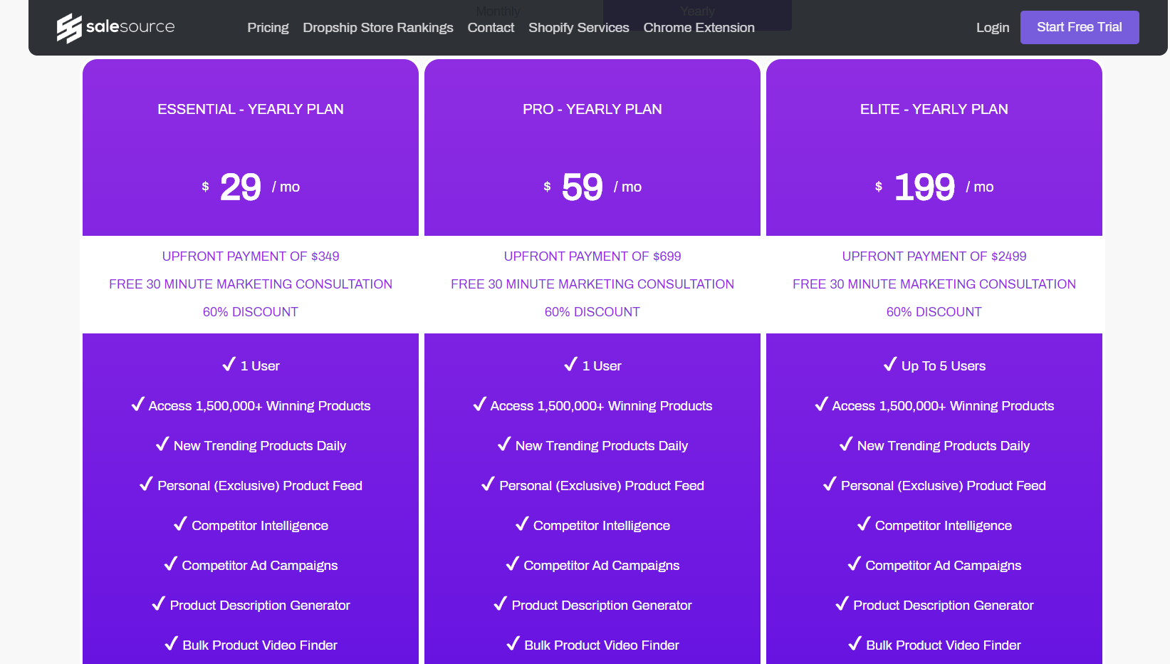 SaleSource offering outstanding functionalities such as access to more than 15 lakhs products, exclusive product feed, competitor ad campaigns, deep product analyzer, incredible chat support, custom conversion training and more. The feature may vary according to the plan. If you want an all-in-one features then look no further than Elite SaleSource plan.
